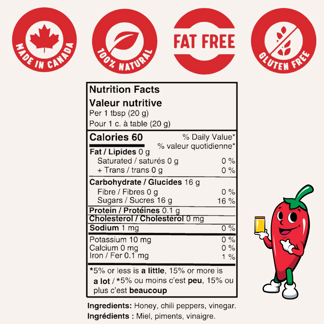 1 x Hochi Hot Honey – Extra Hot (500g) - Made with Canadian honey, organic apple cider vinegar, and chilies