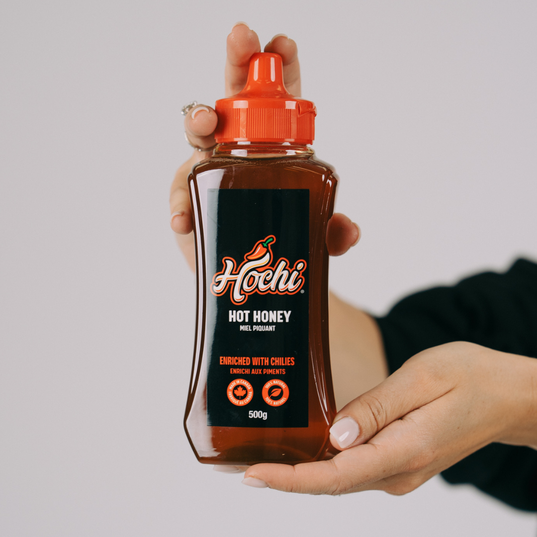The one that started it all. Hochi Hot Honey – Original blends sweet Canadian honey with a kick of chili heat for the perfect drizzle. Balanced, bold, and endlessly versatile — it’s the heat you’ll reach for again and again.